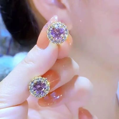 Creative & Personalized Minimalist Fashion Purple Inlaid Stud & Huggie Earrings, Light Luxury Style, Fashionable & Versatile